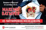 Максим Батырев в Иркутске с мастер-классом «45 татуировок менеджера» [21.08.2015]
