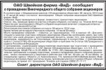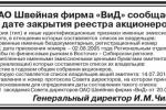ОАО Швейная фирма «ВиД» сообщает о дате закрытия реестра акционеров [18.07.2014]