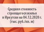 Средняя стоимость строящегося жилья в Иркутске на 04.12.2020 г. (тыс. руб./кв. м) [11.12.2020]